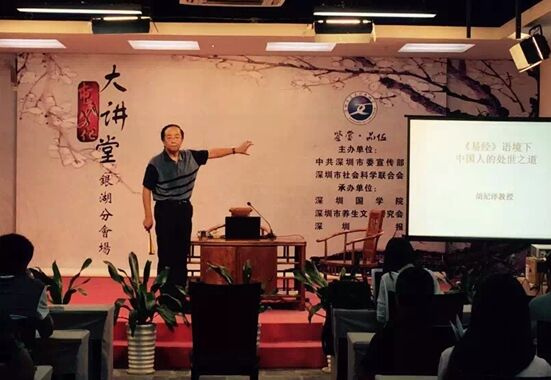 2015年9月12日下午,深圳大学教授、中国文化心理研究专家胡纪泽做客“深圳市民文化大讲堂”,结合《易经》、中国传统文化和现代中国人的心理,讲授中国文化中的处世哲学——《易经与处事之道》。